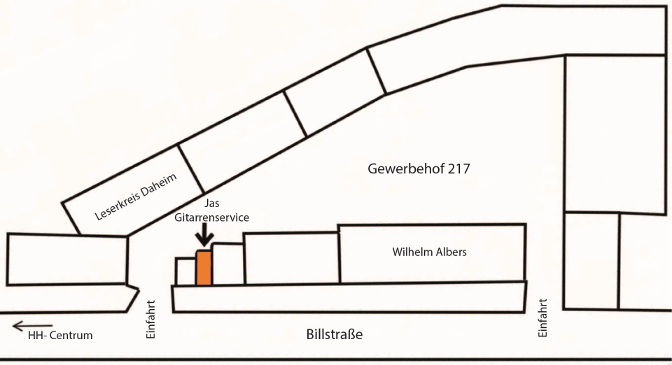 S21 Richtung „Aumühle“ 2 Stationen fahren bis „Rothenburgsort“. Bus 160 nehmen, Richtung „Wandsbek Markt“, 3. station „Billstraße Mitte“ aussteigen. Noch ca 50 m in die Fahrtrichtung und auf der gegenüberliegenden Straßenseite liegt der „Gewerbehof 217“.
